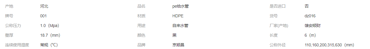 hdpe給水管大口徑直埋